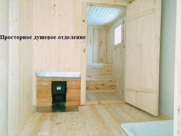 Оборудованное душевое отделение с горячей водой от котла на печи