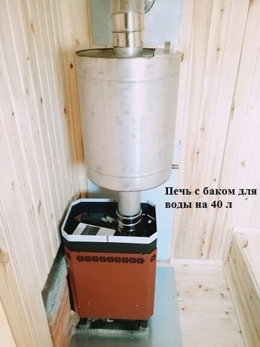 Печка сразу укомплектована баком для горячей воды!!!